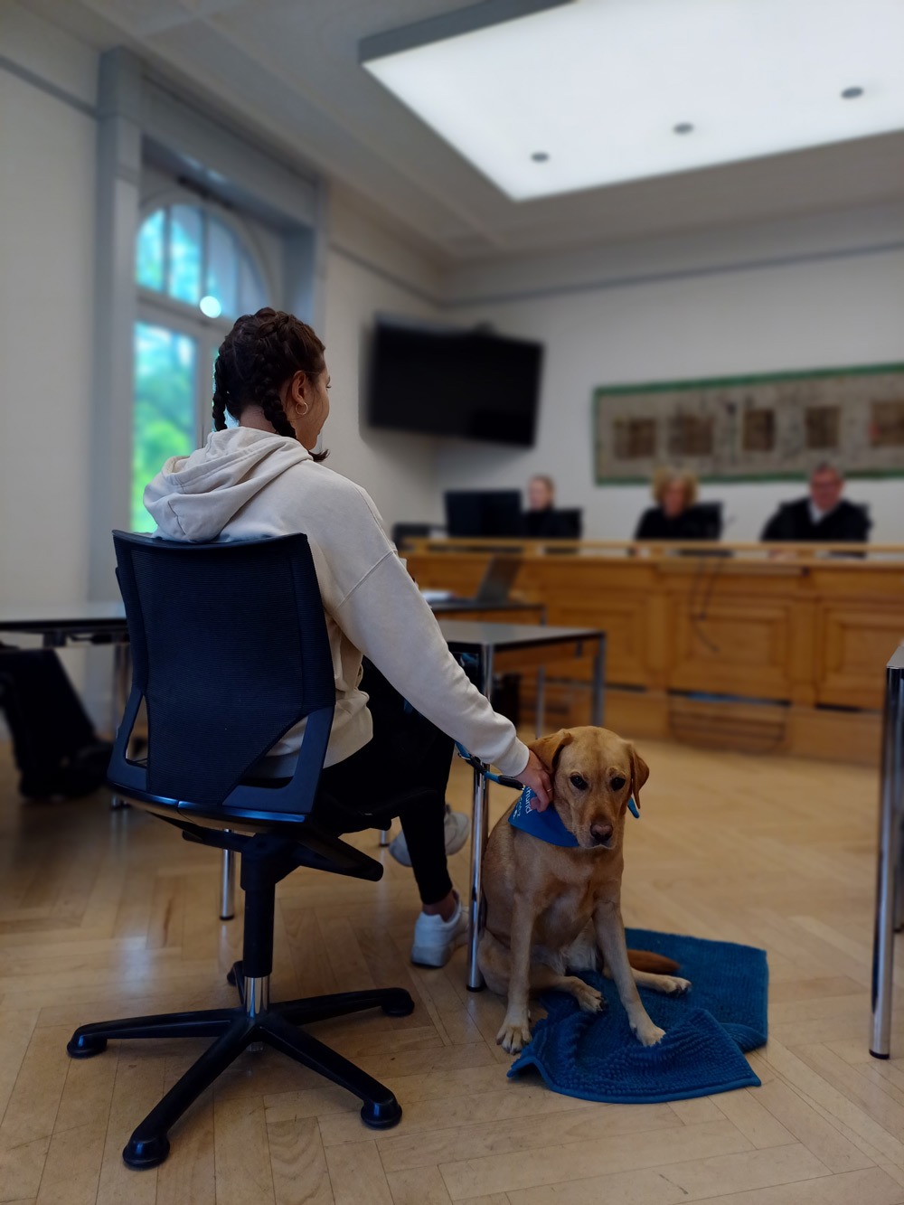 Bitte beachten Sie: Es besteht kein Anspruch auf die Begleitung durch unsere Vernehmungsbegleithündin! In jedem Verfahren ist mit den im Strafprozess Verfahrensbeteiligten zu klären, ob die hundegestützte Intervention gestattet wird und somit zum Einsatz kommen kann.
